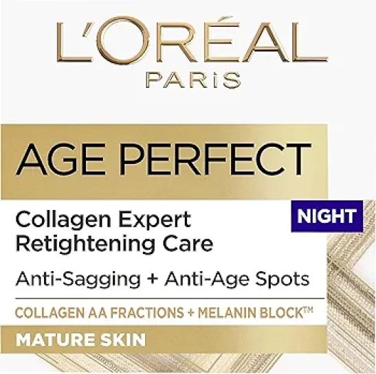 L’Oréal Paris Age Perfect Collagen Expert Retightening Night Cream 50+, Firmer, Moisturised, Nourished Skin, Anti-Age Spots, Collagen AA Fractions, 50ml