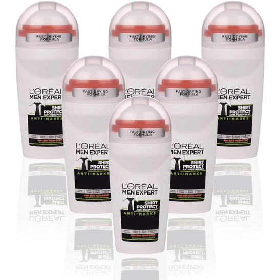L'Oréal Paris Men Expert 48H Shirt Protect Anti-Perspirant Roll On Deodorant for Men, 50ml Pack of 6