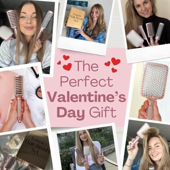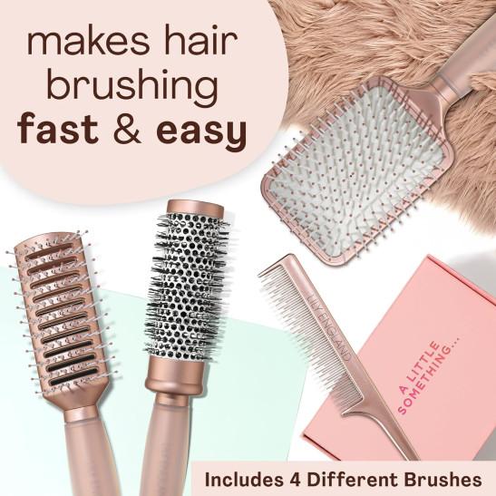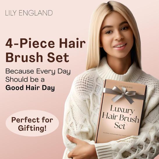 Luxury Hair Brush Gift Set by Lily England - 4-Piece Professional Styling Collection - Premium Ladies Gift Sets | Elegant Gifts for Women for All Hair Types - Matte Rose Gold