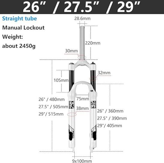 MabsSi 26/27.5/29 Inch Spring Bicycle Front Fork Straight Tube Mechanical Hydraulic MTB Suspension Fork