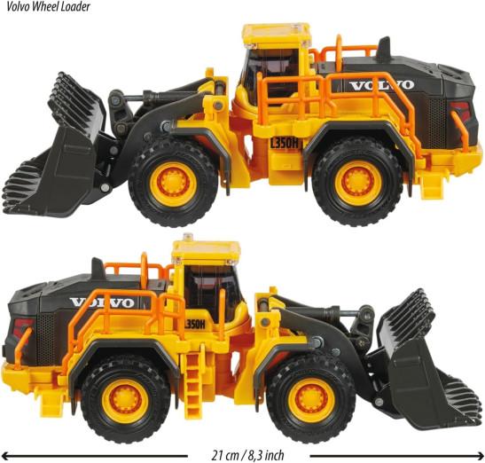 Majorette - Volvo Wheel Loader - Large Construction Site Vehicle for Children Aged 3+ (21.0 x 7.5 x 8.5 cm) - with Large Shovel and Moving Parts, with Light and Sound, Yellow