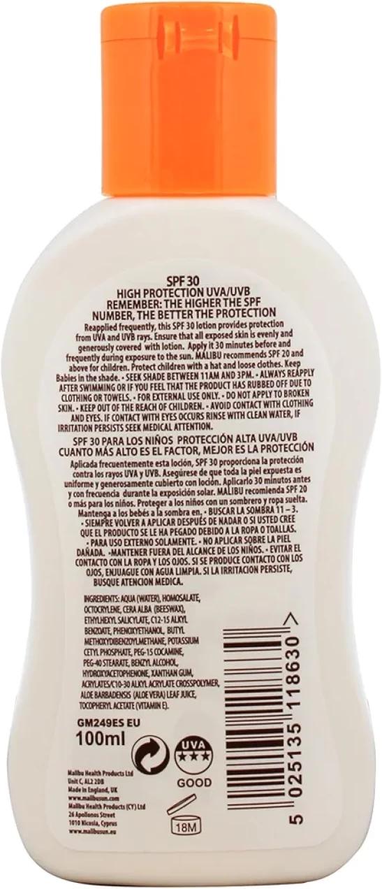 Malibu Kids SPF 30 Lotion, High Protection Sun Cream