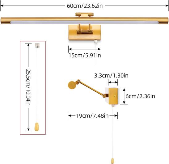 MantoLite LED Bathroom Vanity Light Fixture 12W Cabinet Picture Wall Lights, Indoor Lightings Wall Sconce with Ajustable Arm for Hotel Bedside 3000K Reading Lamp Display Lamps (960LM Brass, 60CM
