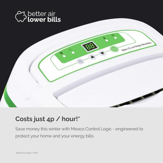 Meaco 12L Low Energy Dehumidifier and Air Purifier 2 in 1- Quiet Dehumidifier For Flats, Apartments & Small Homes - Controls Humidity & Cleans Air Year Round, Comes with HEPA Filter [Energy Class A]