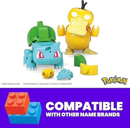 MEGA Pokémon Building Toys Set Bulbasaur & Psyduck with 63 Pieces, 2 Poseable Characters and Poké Ball, 2 Inches Tall, for Kids, HXP14