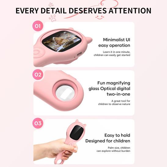 Microscope for Kids - Portable Handheld Magnifying Glass for Kids - Mini Digital Microscope for Kids Educational Science Toys, Christmas Birthday Gifts for Age 3 4 5 6 7 8 Girls&Boys (Pink)