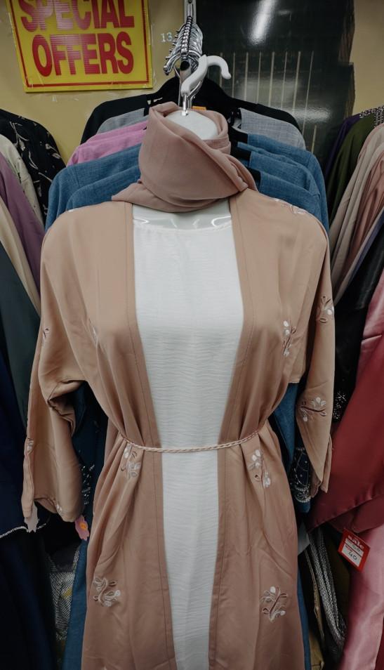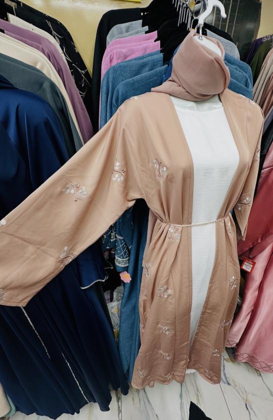 Embroidered Open Abaya Rose Gold (58) 3-Piece Set with Inner Dress & Matching Hijab