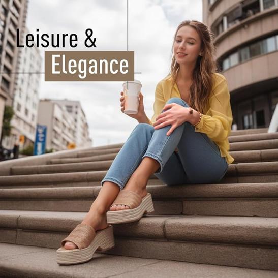 Monrovia Platform Sandals Women Slip on Raffia Wedges Sandals Slides Espadrilles Wedge Heels Raffia Straws Chunky Sandals