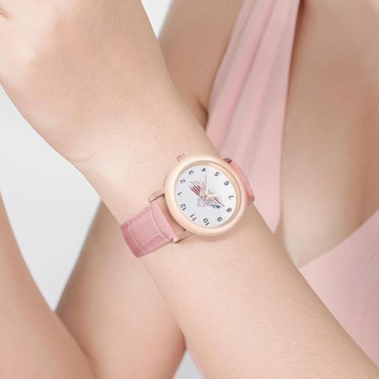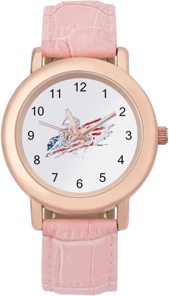 Motocross Dirt Bike USA Flag Fashion Watch For Women Easy Reader Novelty Round Watches Slim Quartz Casual Dress Wrist Watch Pink