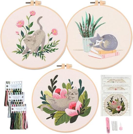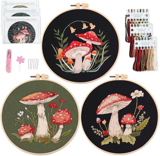 Myfelicity 3 Sets Mushroom Embroidery kit, Adult Beginner DIY Needle kit, Art Craft Handy Sewing Set