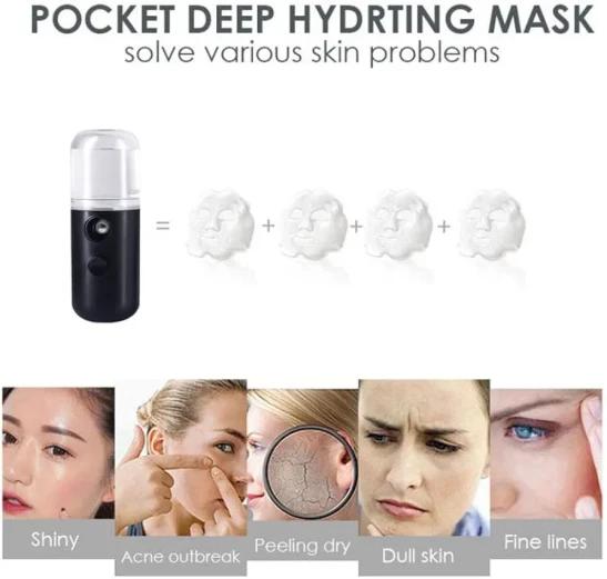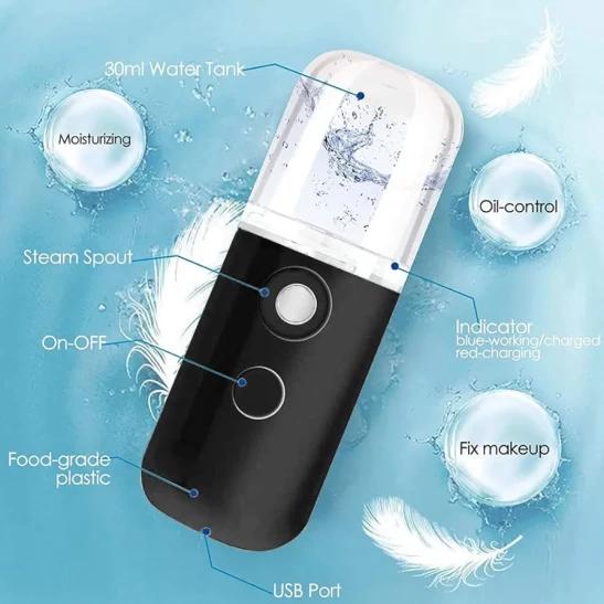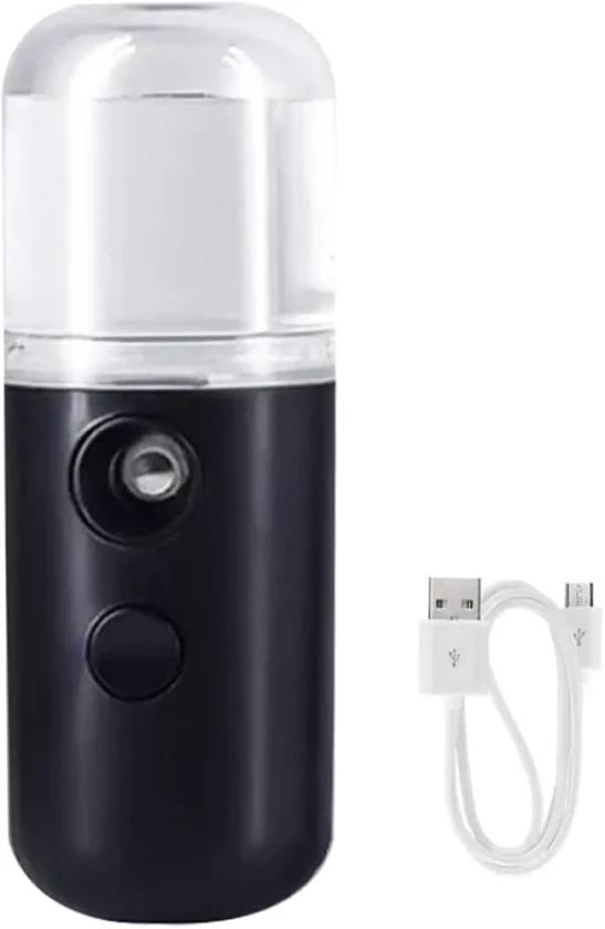 Nano Facial Mister, Facial Mister Mini Steamer USB Rechargeable Mist Sprayer for Face Daily Makeup Skin Care Black 30ml