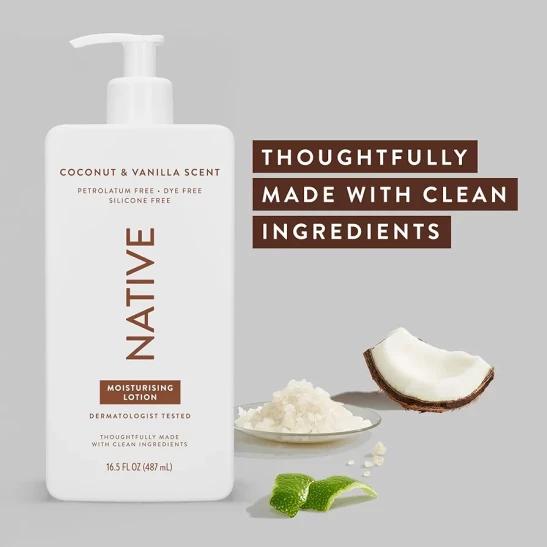 Native Body Lotion for Men & Women - Silicone & Dye Free - Coconut & Vanilla Scented Hand Lotion + Body Moisturizer for Dry Skin