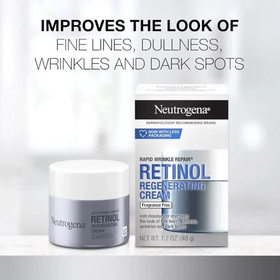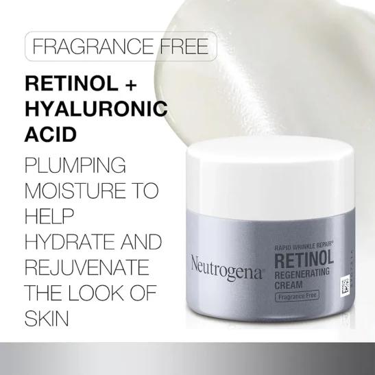 Neutrogena Rapid Wrinkle Repair Hyaluronic Acid Retinol Cream, Anti Wrinkle Cream, Face Moisturizer, Neck Cream & Dark Spot Remover for Face - Day & Night Cream with Hyaluronic Acid & Retinol, 1.7 oz