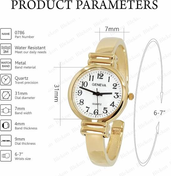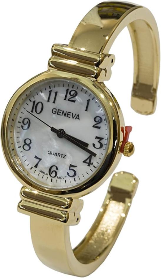 New Gold Geneva Metal Band Slim Case Women's Bangle Cuff Watch, Gold, L, Modern