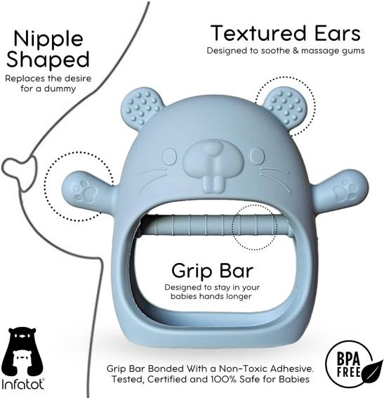 New Infant Silicone Chipmunk Baby Teether, New Infant Silicone Chipmunk Teether Teething Mitten for Babies - CM Blue