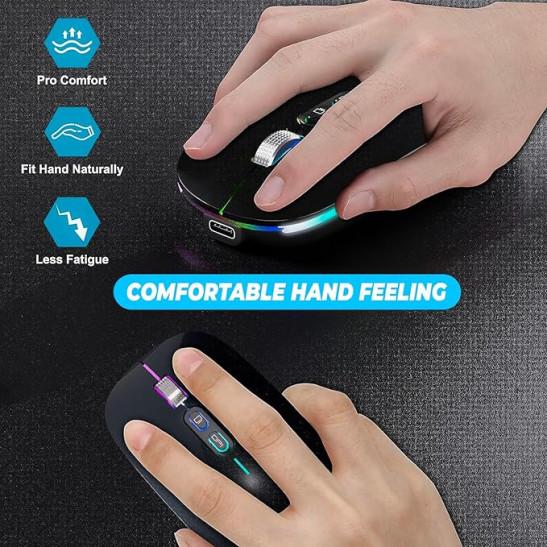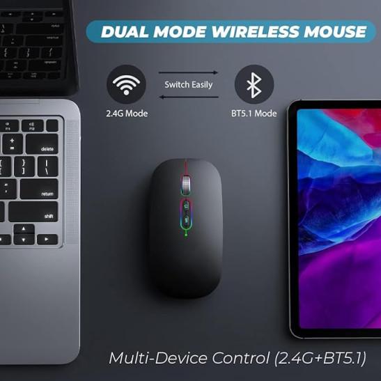 New Wireless Mouse With 2.4G & Bluetooth for Laptop, Smart Desktop Button & 800 to 1600 DPI, RGB Ergonomic Design Compatible With Macbook iPad Computer Notebook