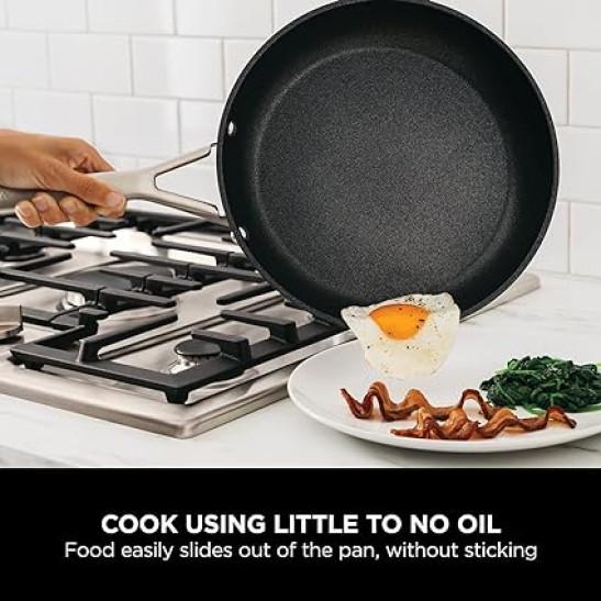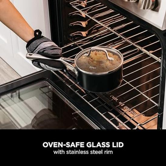 Ninja ZEROSTICK Essentials Cookware 3-Piece Saucepan Set with Glass Lids, Non-Stick, Long Lasting, Forged Aluminium Pan Set, Induction Compatible, Oven Safe to 260°C, Black C13000UK