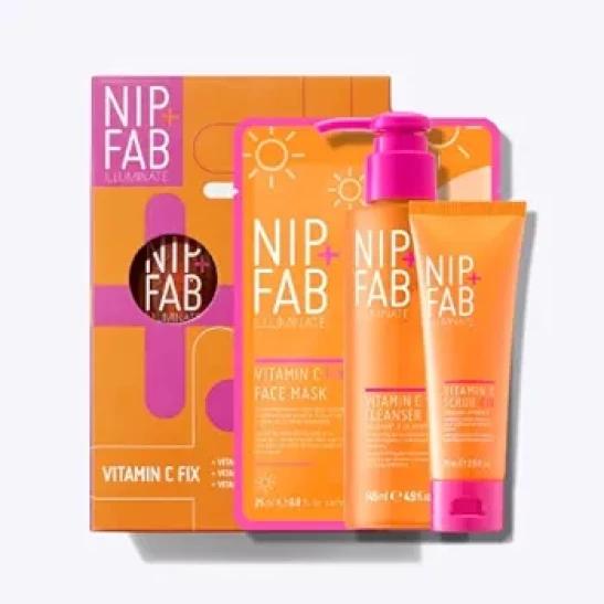 Nip+Fab Vit C 3 Piece Starter Kit | Contains Vit C Fix Cleansing Fix, Scrub, Sheet Mask | Face Skin Exfoliating, Brightening, Hydrating, Toning, Vitamin C for Skin Care | Vegan and Cruelty Free