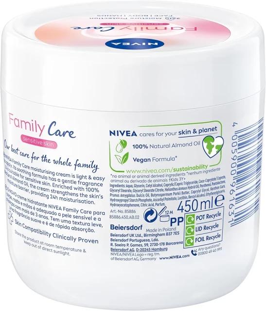 NIVEA Almond, Family Care Sensitive Moisturising Cream, Body Cream for Dry Skin, Sensitive Skin Moisturiser with Natural Almond Oil, Suitable for the Whole Family, 450 ml (Pack of 1)