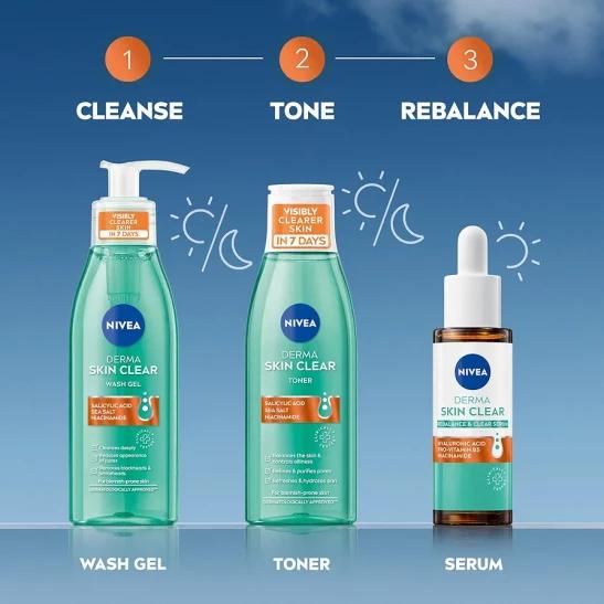 NIVEA Derma Skin Clear Toner (200ml), Cleansing and Hydrating Toner, Salicylic Acid Toner Enriched with Niacinamide to Rebalance the Skin and Remove Impurities, For Blemish-Prone Skin