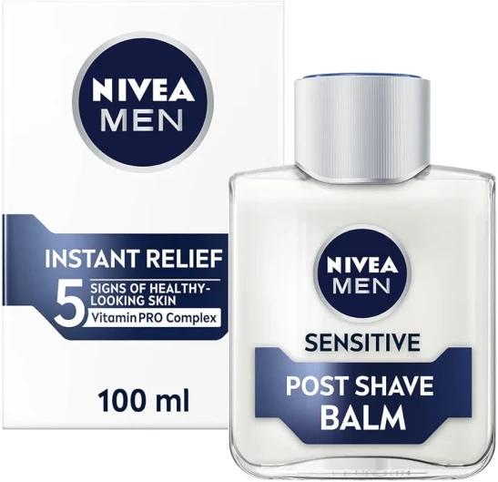 NIVEA MEN Sensitive Post Shave Balm (100ml), 0% Alcohol with Chamomile and Vitamin E, Relieves Skin from 5 Signs of Irritation, Men's Skin Care and Shaving Essentials