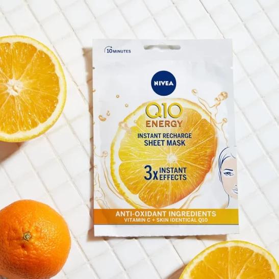 NIVEA Q10 + C Power Anti-Wrinkle + Energy Sheet Mask (1 Piece), Anti Ageing Moisturiser Mask with Vitamin C, Face Mask with Coenzyme Q10, Anti Wrinkle Cream Mask