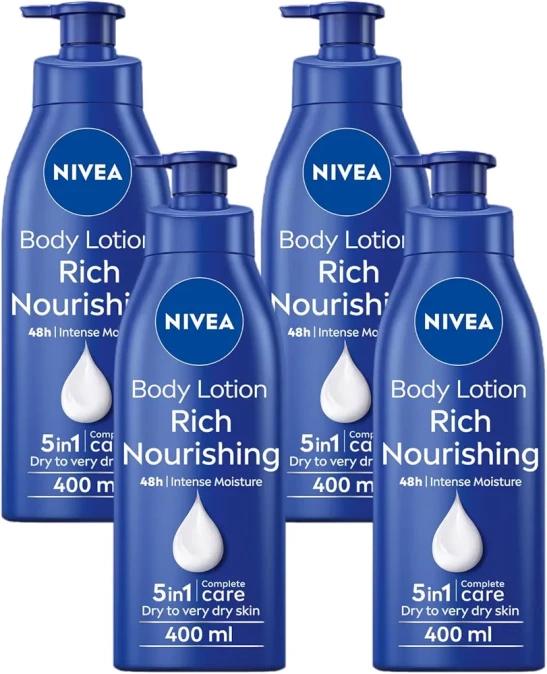 NIVEA Rich Nourishing Body Lotion (400ml), NIVEA Moisturiser for Dry Skin Made with Deep Moisture Serum,