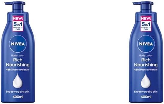 NIVEA Rich Nourishing Body Lotion (400ml), NIVEA Moisturiser for Dry Skin Made with Deep Moisture Serum