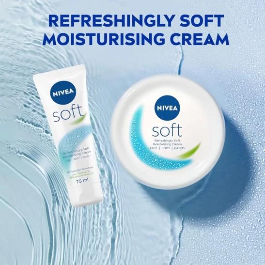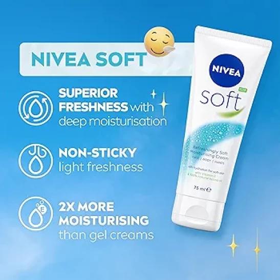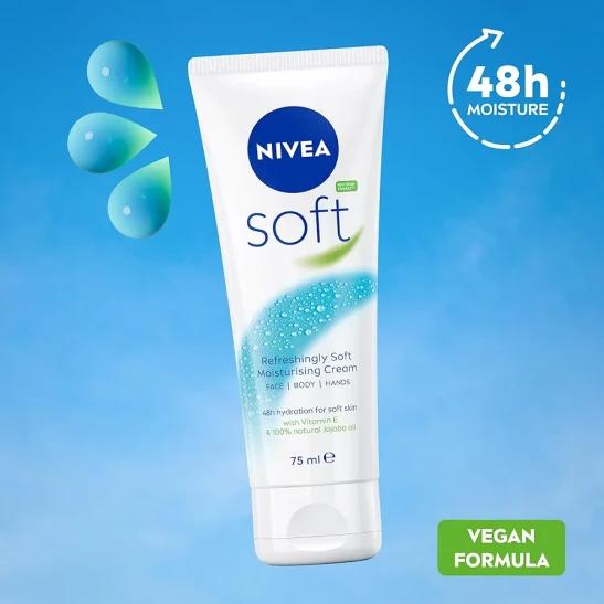 NIVEA Soft Moisturising Cream (75ml), 48H Moisturising Cream for Face, Body and Hands with Vitamin E and Jojoba Oil, Hand Cream Moisturises Deeply, Vegan Formula Day Cream
