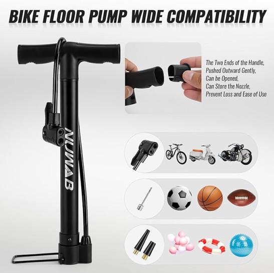 NUWAB Bike Floor Pump, Cycling Floor Pump with Presta & Schrader Valves