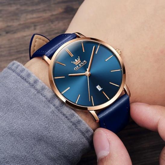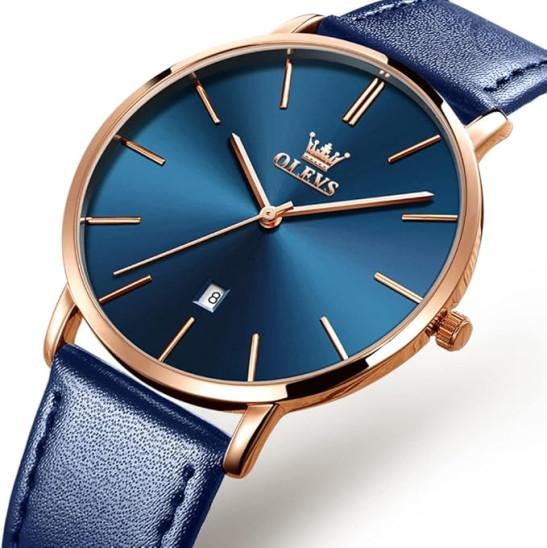 OLEVS Mens Wrist Watches Ultra Thin 6.5mm Minimalist Business Dress Waterproof & Date & Leather Strap Slim Watches for Men