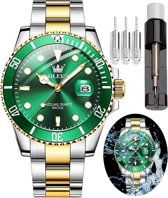 OLEVS Watch for Men Diamond Business Dress Analog Quartz Stainless Steel Waterproof Luminous Date Two Tone Luxury Casual Wrist Watch