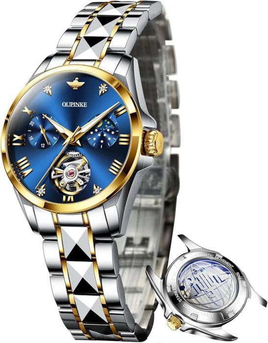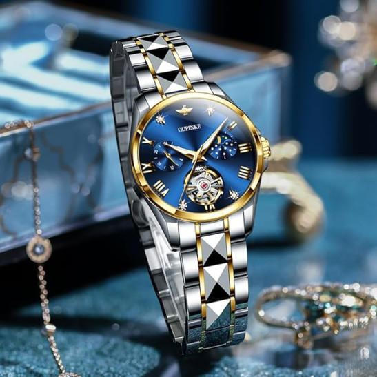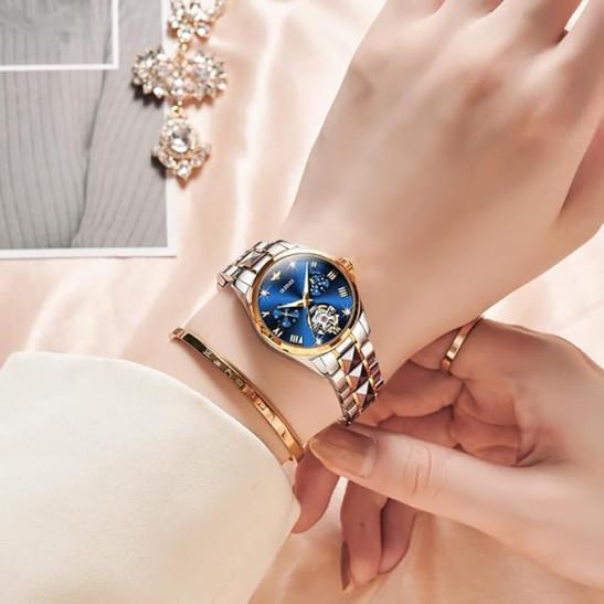 OUPINKE Watch for Women Automatic Luxury Diamond Skeleton Self Winding Mechanical Elegant Dress Ladies Wrist Watches Sapphire Crystal Waterproof Luminous