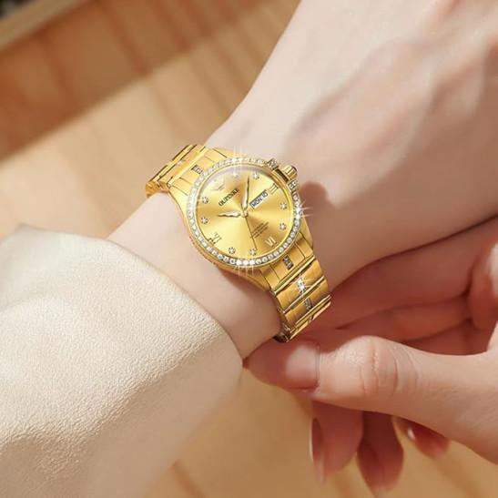 OUPINKE Womens Automatic Watches Rose Gold Ceramic Diamond Elegant Dress Wrist Watch Skeleton Engrave Mechanical Self Winding Waterproof Luminous