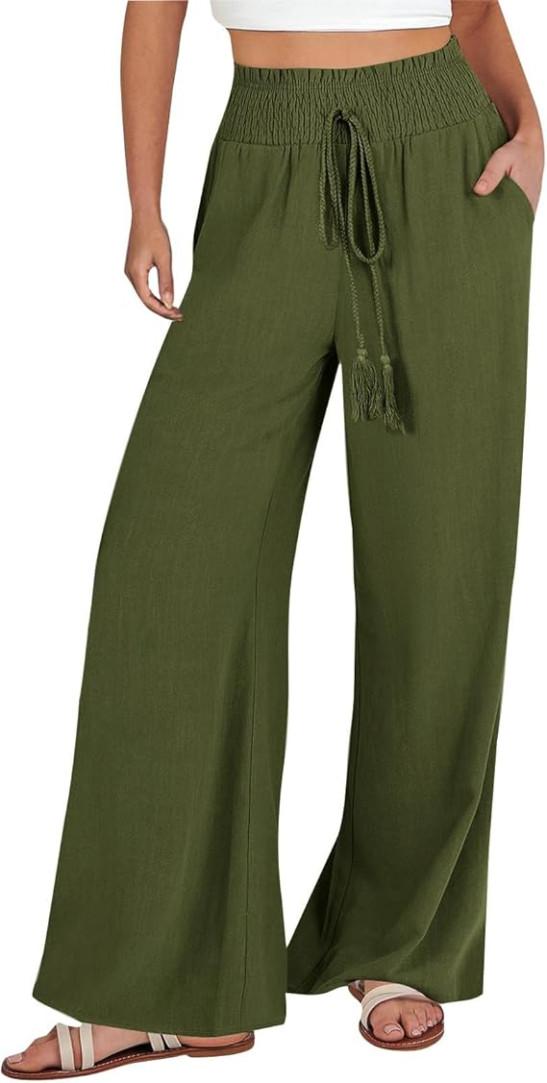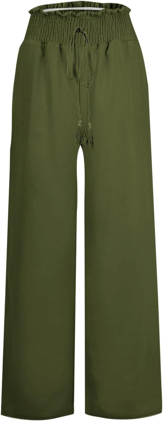 Palazzo Trousers for Women UK Ladies Summer Trousers Drawstring Solid Color Wide Leg Pants Baggy Beach Loose Sweatpants Tracksuit Bottoms UK Size Plus Size