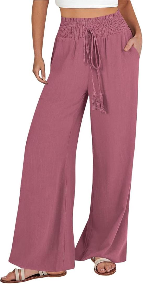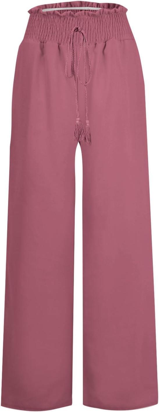 Palazzo Trousers for Women UK Ladies Summer Trousers Drawstring Solid Color Wide Leg Pants Baggy Beach Loose Sweatpants Tracksuit Bottoms UK Size Plus Size