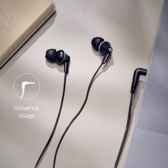 Panasonic RP-HJE125-K, 3.5mm ErgoFit Wired Earbuds, Noise Isolating In-Ear Stereo Earphones, Dynamic Clear Sound, Ergonomic Custom-Fit Earpieces (S/M/L), Large 9mm Driver, Long cord, No Mic - Black