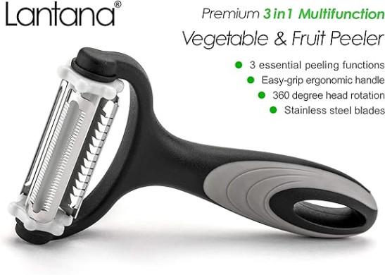 Peeler 3 in 1 Potato /Serrated Fruit & Vegetable /Julienne Slicer. Peelers in 1 for Speed Peeling. Black/Grey/Stainless Steel