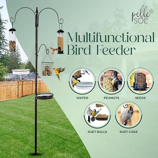 Pelle & Sol Bird Feeder with 3 Bird Feeders & 2 Dishes, Bird Feeders Hanging Station, Bird Feeder Pole, Bird Feeding Station, Metal Bird Feeder Stand, Bird Feeders for Small Birds Garden Decorations
