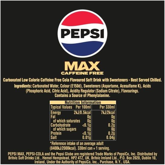 Pepsi Max No Caffeine No Sugar Cola Bottle 2L