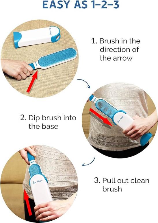 Pet Hair Remover Lint Brush With Self-Cleaning Base