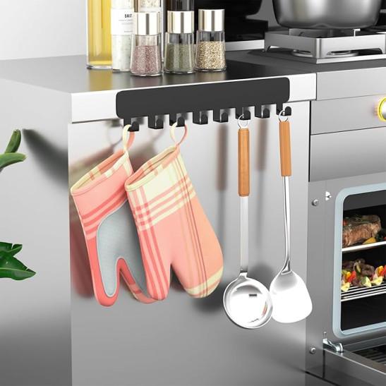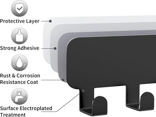 pickpiff Key Holder for Wall Self Adhesive, Key Hooks with 8 Hooks Wall Mounted, Black Key Hangers No Drill for Living Room, Kitchen, Office
