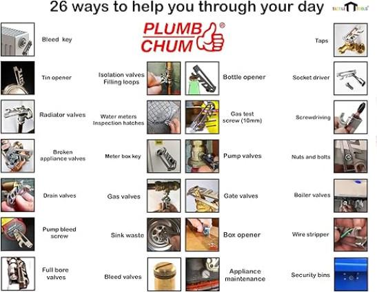 Plumb Chum 14 in 1 Plumbers Professional Keyring Plumbing Multi Tool