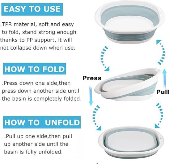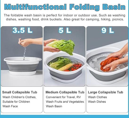 Portable Wash Basin Silicone Plastic Basket Multipurpose Outdoor Travel Basin Camping Sink