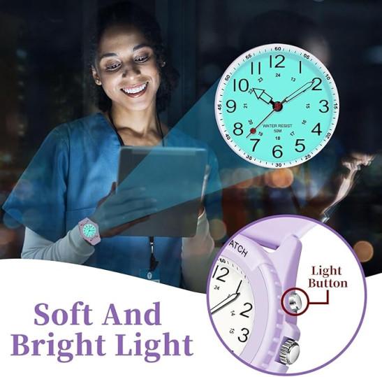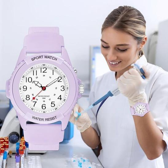 PROKING Waterproof Nurse Watch for Medical Professionals,Women Men, 24 Hour with Second Hand, Night Light, Military Time Easy to Read Dial, Soft and Breathable Silicone Band