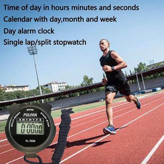 PULIVIA Sports Stopwatch Timer Lap Split Digital Stopwatch with Clock Calendar Alarm