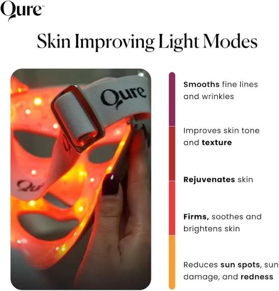 Qure LED Skin Care Face Mask With 5 Different Modes (Red Light Therapy, Amber Light & Blue Light Therapy) One Device with Customizable Settings & Treatments. Perfect For At Home Use LED Facial Therapy