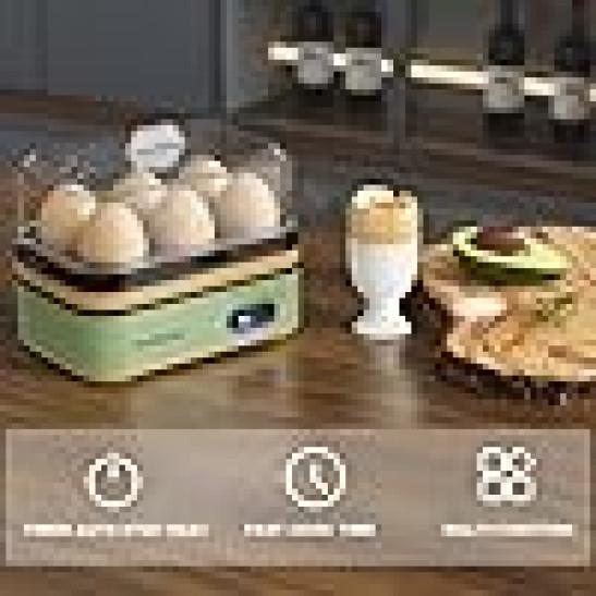 Rapid Egg Cooker Electric 6 Eggs Capacity, Soft, Medium, Hard Boiled, Poacher, Omelet Maker Egg Poacher With Auto Shut-Off, BPA Free (Retro Green)