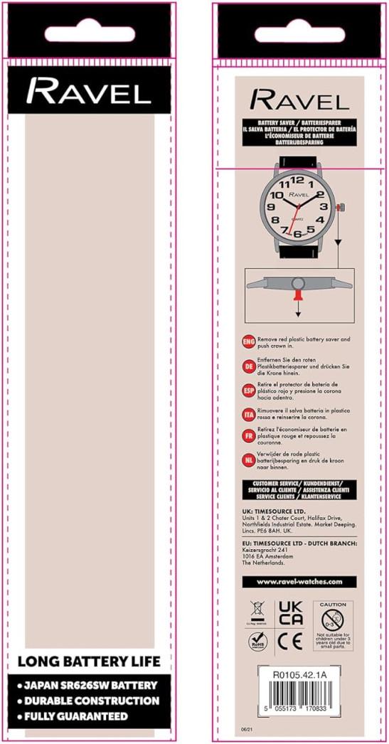 Ravel Unisex Easy Read Watch with Big Numbers - Analogue Quartz - R0105