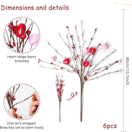 RECUTMS Valentine’s Day Picks Gifts, 6 Pcs Artificial Pink Red Berry Banquet Heart Shaped Stems for DIY Flowers Arrangements Wedding Anniversary Home Party Table Centerpiece Living Room Decorations